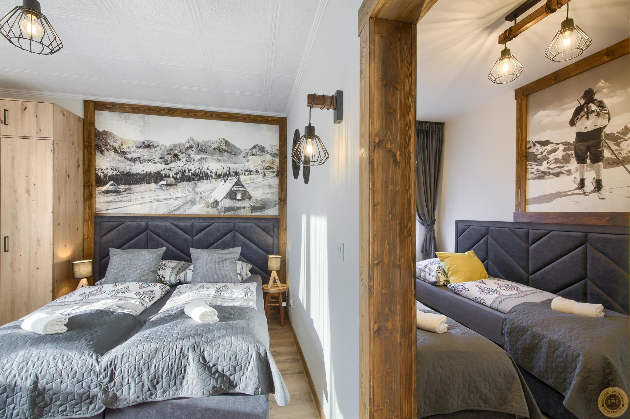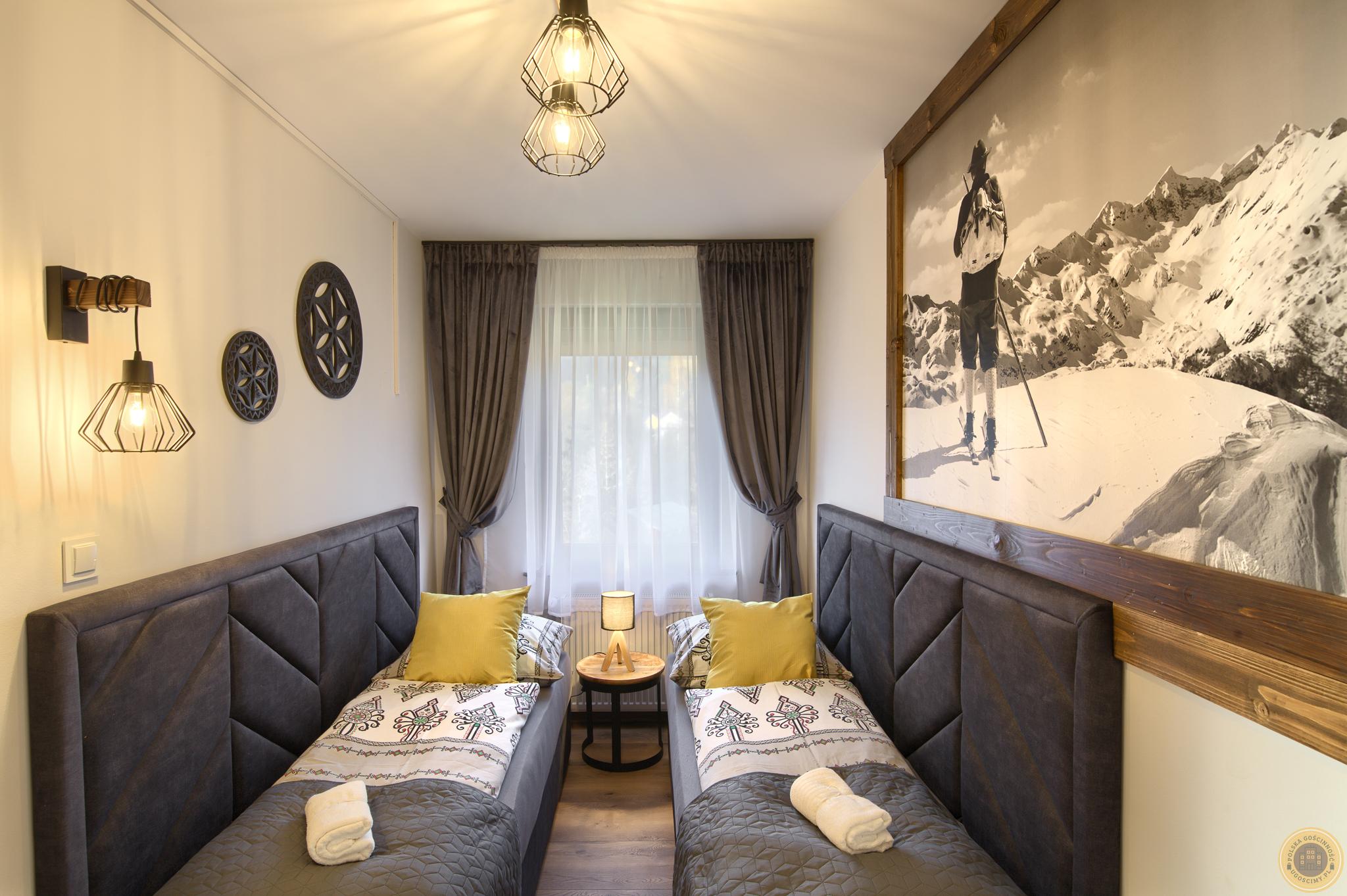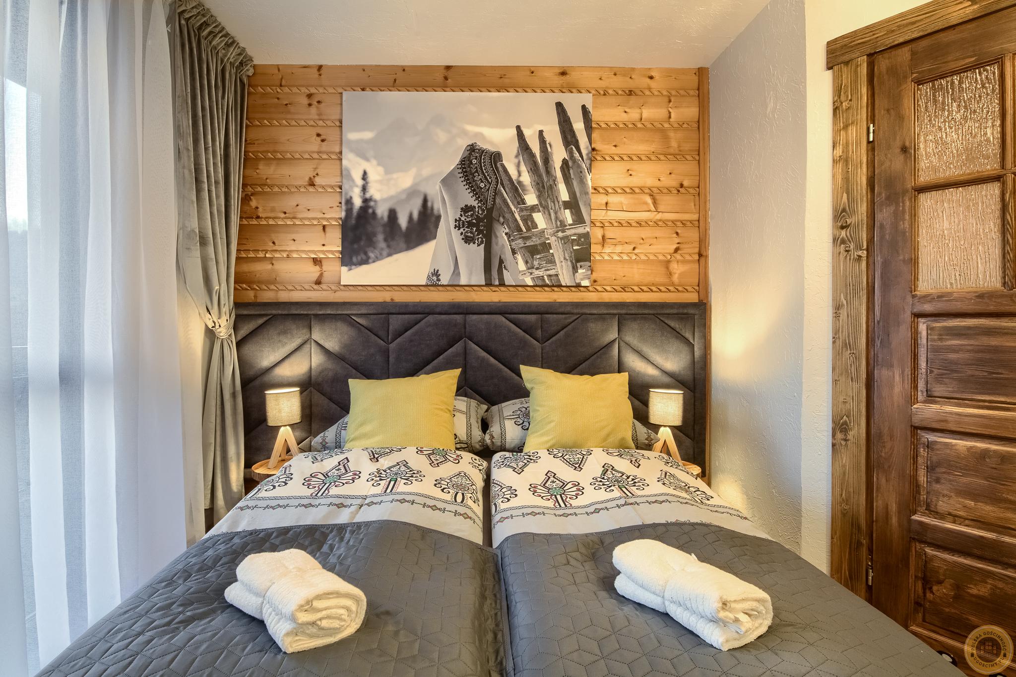- Sypialnia nr 2 posiada łóżko małżeńskie z możliwością rozłączenia na dwa pojedyncze,