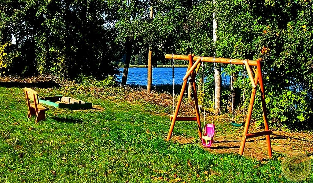 Noclegi, apartamenty nad jeziorem a w ramach nad jeziorem na terenie mini parku ZORRO (zabawy, odpoczynku ,rozrywki, rekreacji i oczarowania): plac zabaw z piaskownicą, huśtawkami i zjeżdżalnią, batutem zwanym trampoliną, siłownia plenerowa, fitness, miejsce na grill, pomost, łódka , kajak, rower wodny, boisko do badmintona, zaś przy domu oczko wodne z barwnymi rybkami..
